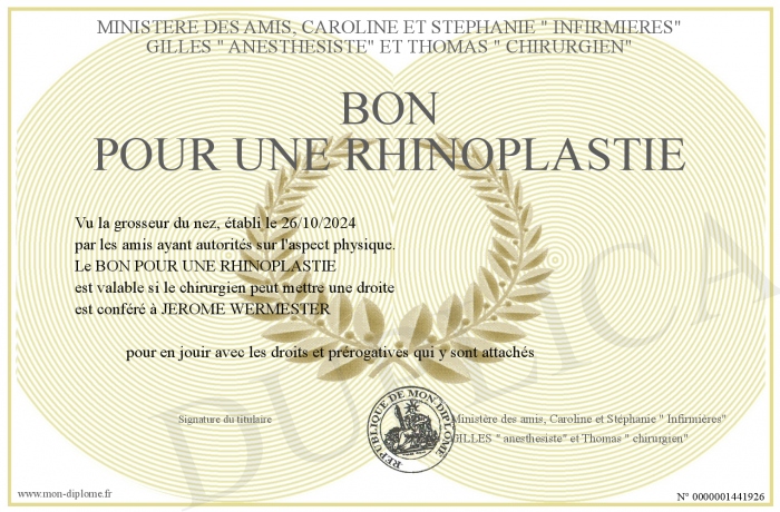 Envoyez par email votre BON POUR UNE RHINOPLASTIE personalisé