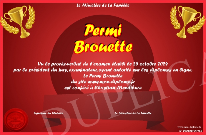 Envoyez par email votre Permi Brouette personalisé