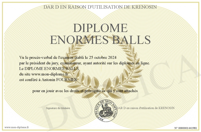Envoyez par email votre DIPLOME ENORMES BALLS personalisé