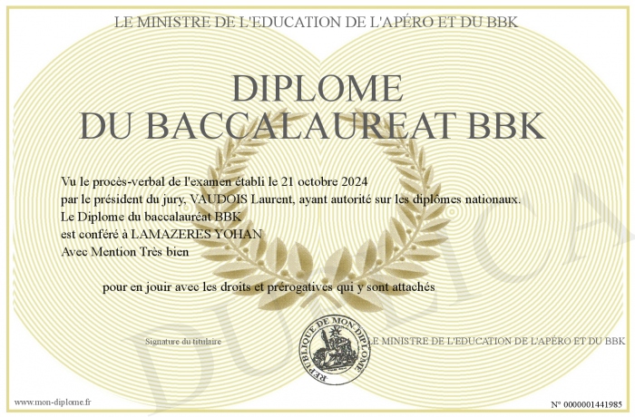 Envoyez par email votre Diplôme du baccalauréat BBK personalisé