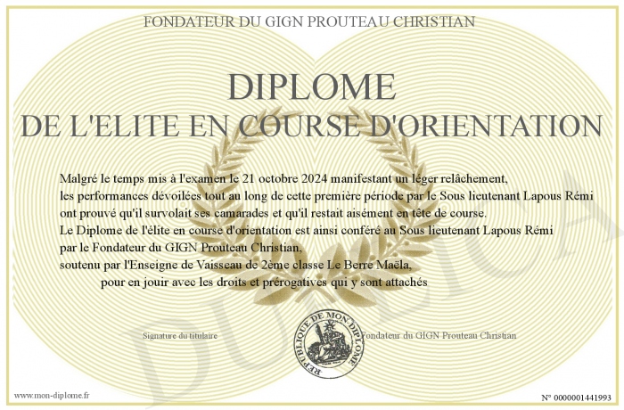 Envoyez par email votre Diplôme de l'élite en course d'orientation personalisé
