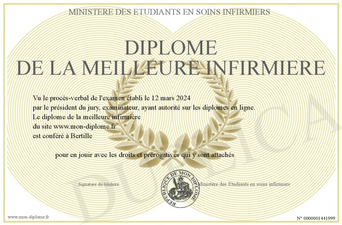 Envoyez par email votre diplôme de la meilleure infirmière personalisé