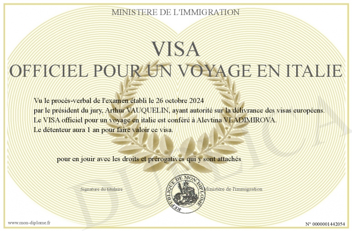 Envoyez par email votre VISA officiel pour un voyage en italie personalisé
