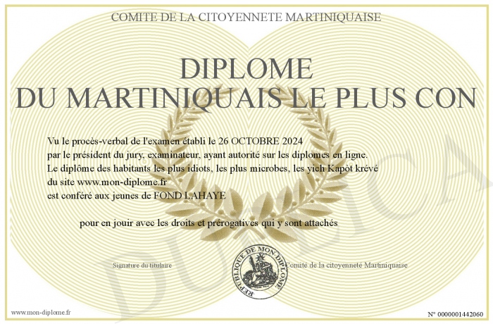Envoyez par email votre Diplôme du MARTINIQUAIS le plus con personalisé