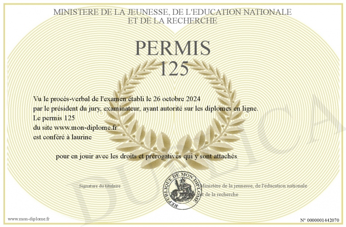 Envoyez par email votre permis 125 personalisé
