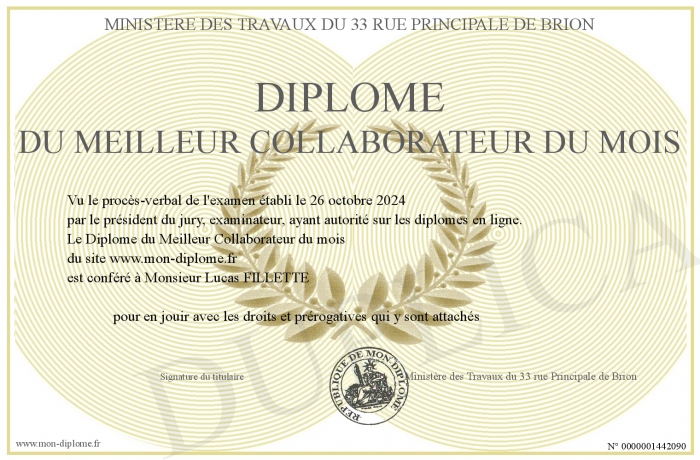 Envoyez par email votre Diplôme du Meilleur Collaborateur du mois personalisé