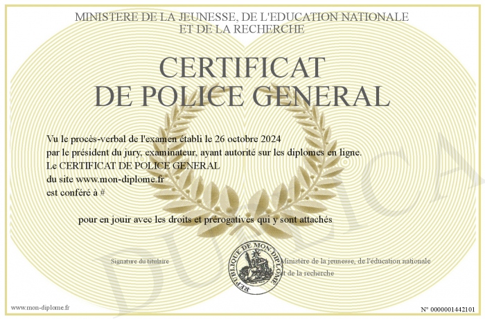 Envoyez par email votre CERTIFICAT DE POLICE GENERAL personalisé