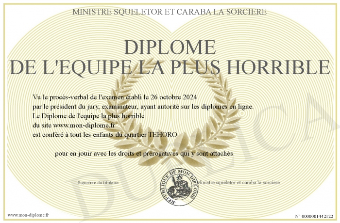 Envoyez par email votre Diplôme de l'equipe la plus horrible personalisé