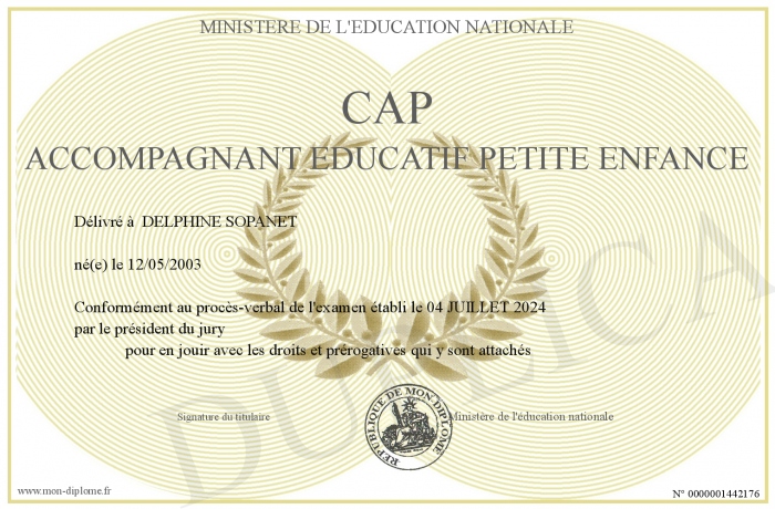 Envoyez par email votre CAP Accompagnant Educatif Petite Enfance personalisé