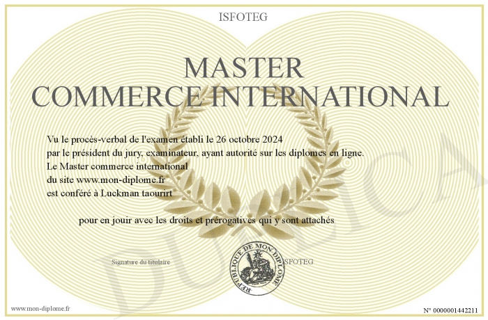 Envoyez par email votre Master commerce international personalisé
