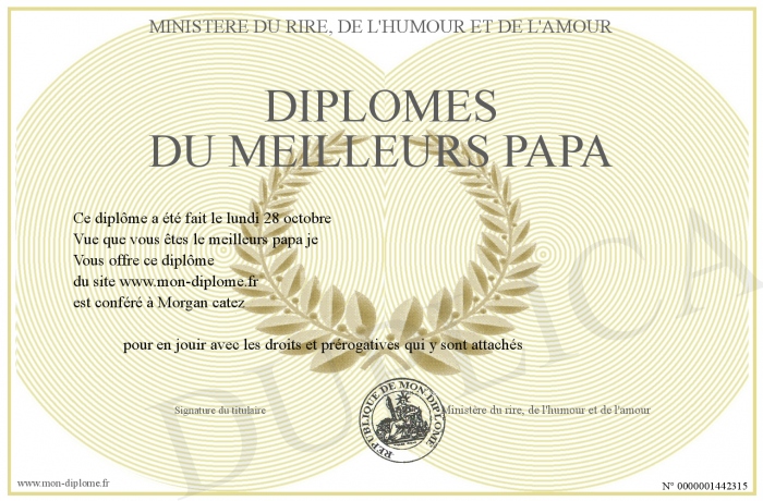 Envoyez par email votre Diplômes du meilleurs papa personalisé