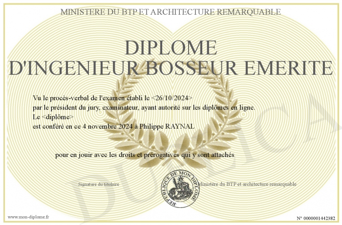 Envoyez par email votre Diplôme d'ingénieur bosseur émérite personalisé