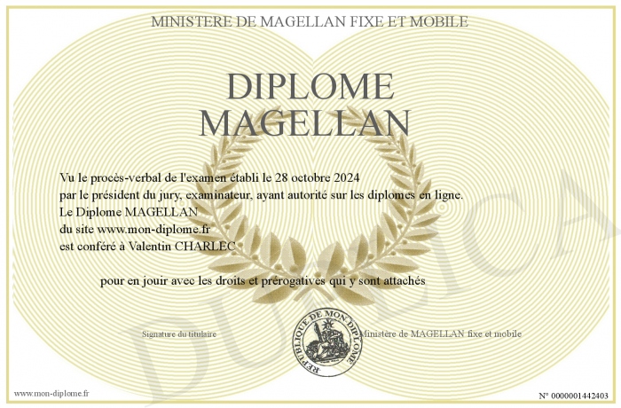 Envoyez par email votre Diplôme MAGELLAN personalisé