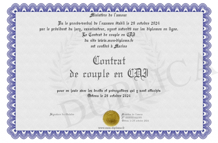 Envoyez par email votre Contrat de couple en CDI personalisé