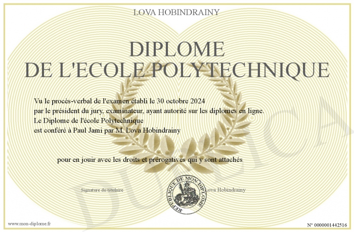 Envoyez par email votre Diplôme de l'école Polytechnique personalisé