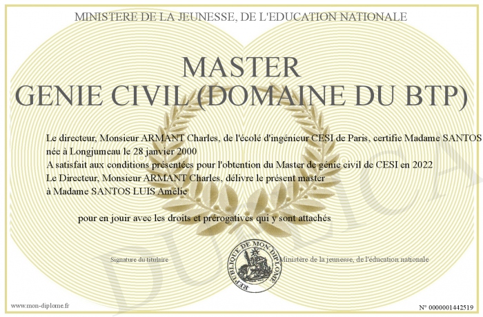 Envoyez par email votre master génie civil (domaine du BTP) personalisé