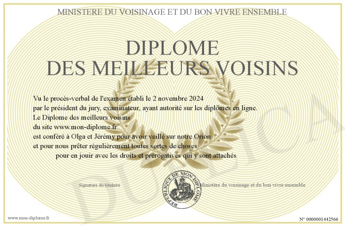 Envoyez par email votre Diplôme des meilleurs voisins personalisé