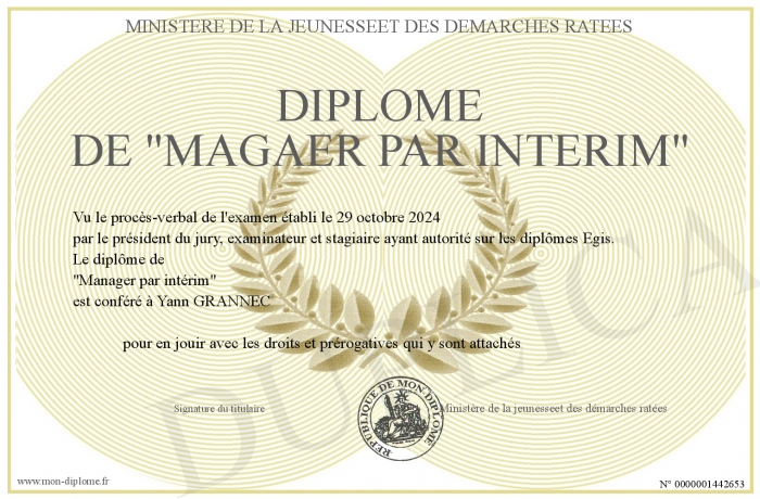Envoyez par email votre Diplôme de -MAGAER PAR INTERIM- personalisé
