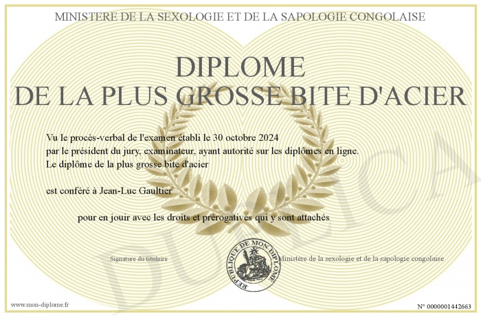 Envoyez par email votre Diplôme de la plus grosse bite d'acier personalisé