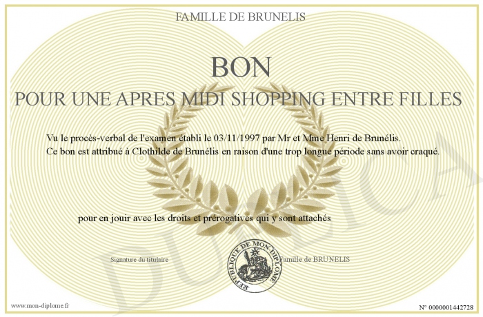Envoyez par email votre Bon pour une aprés midi shopping entre filles personalisé