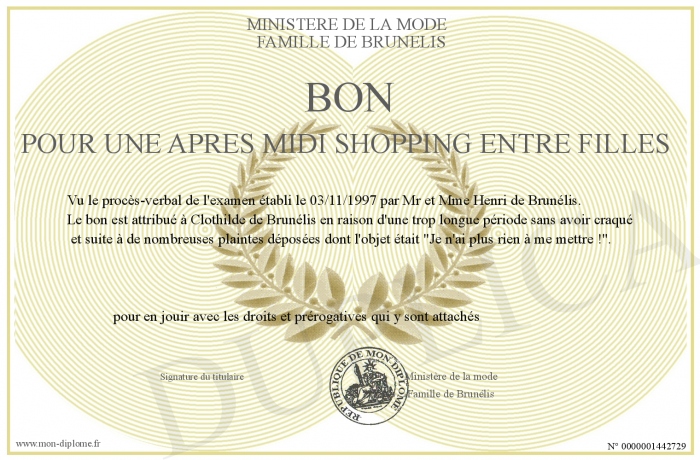 Envoyez par email votre Bon pour une aprés midi shopping entre filles personalisé