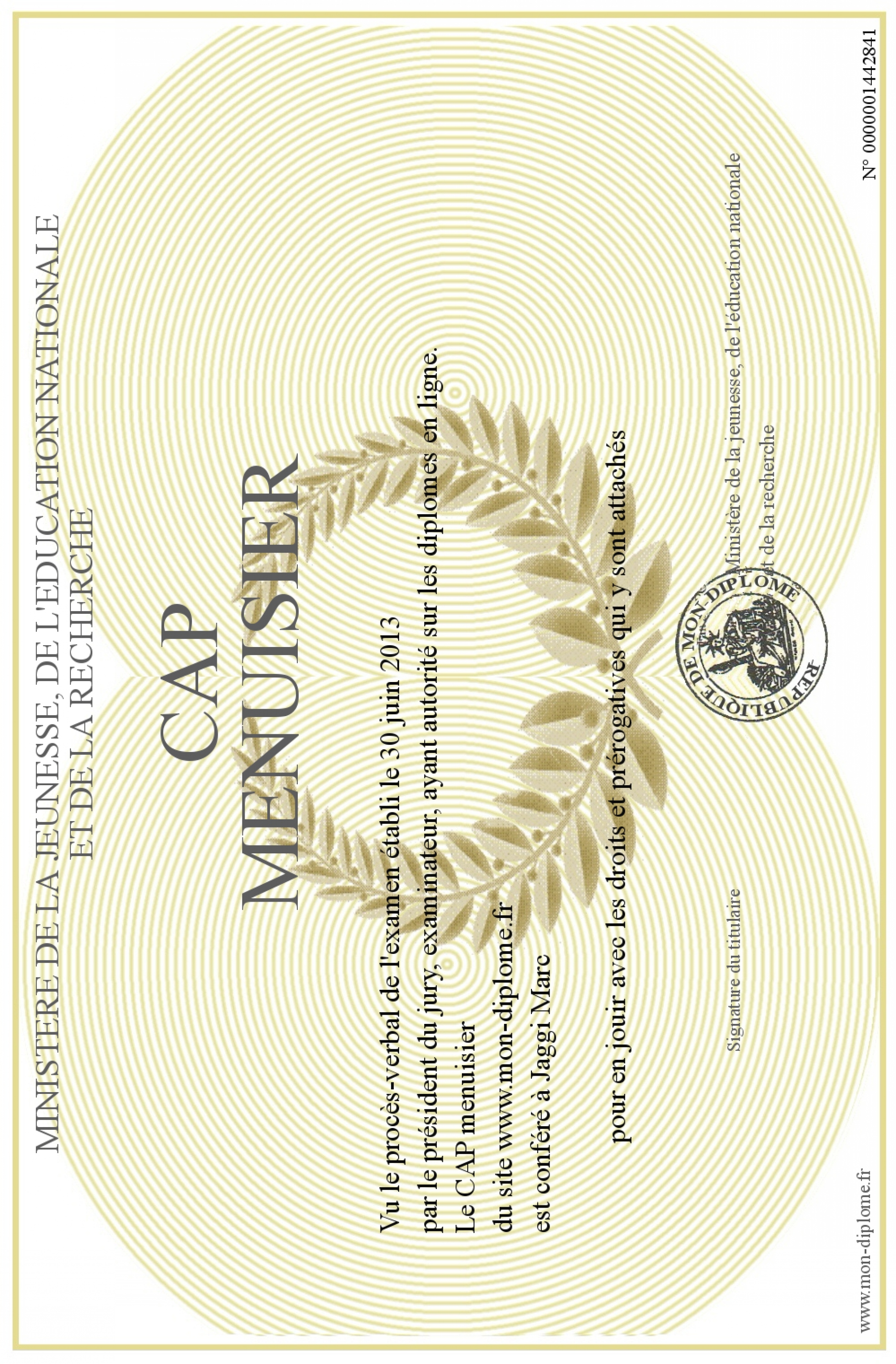 Envoyez par email votre CAP menuisier personalisé