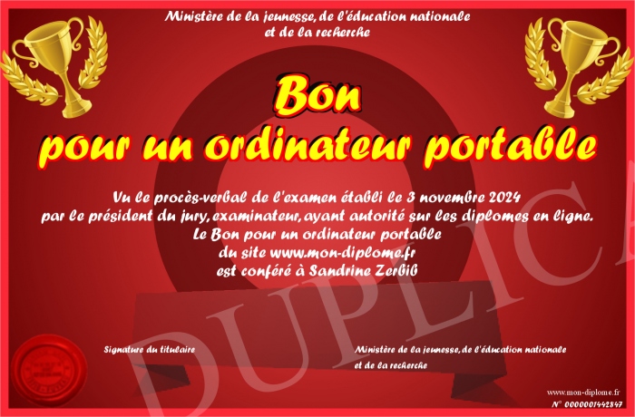 Envoyez par email votre Bon pour un ordinateur portable personalisé