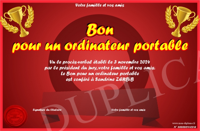 Envoyez par email votre Bon pour un ordinateur portable personalisé