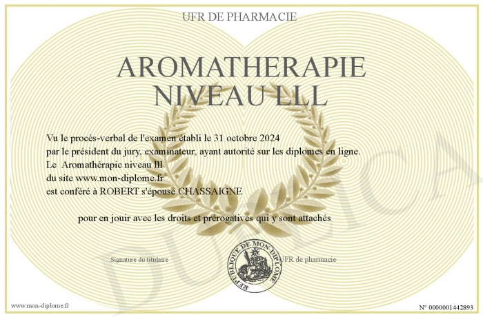 Envoyez par email votre Aromathérapie niveau lll personalisé
