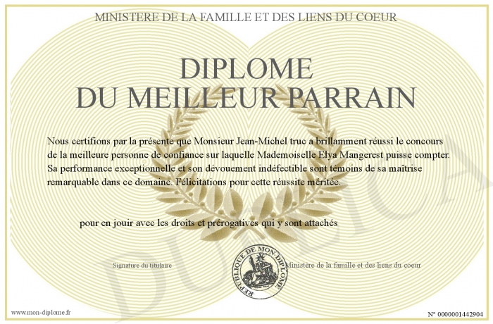 Envoyez par email votre Diplôme du meilleur parrain personalisé