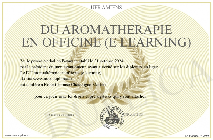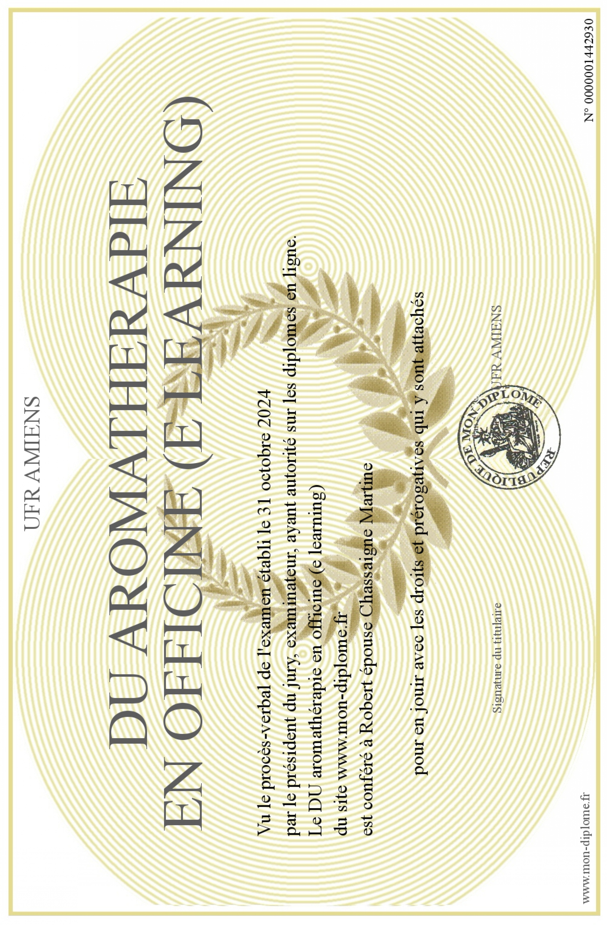 Envoyez par email votre DU aromathérapie en officine (e learning) personalisé
