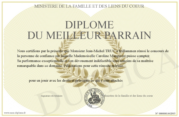 • Diplôme du meilleur parrain