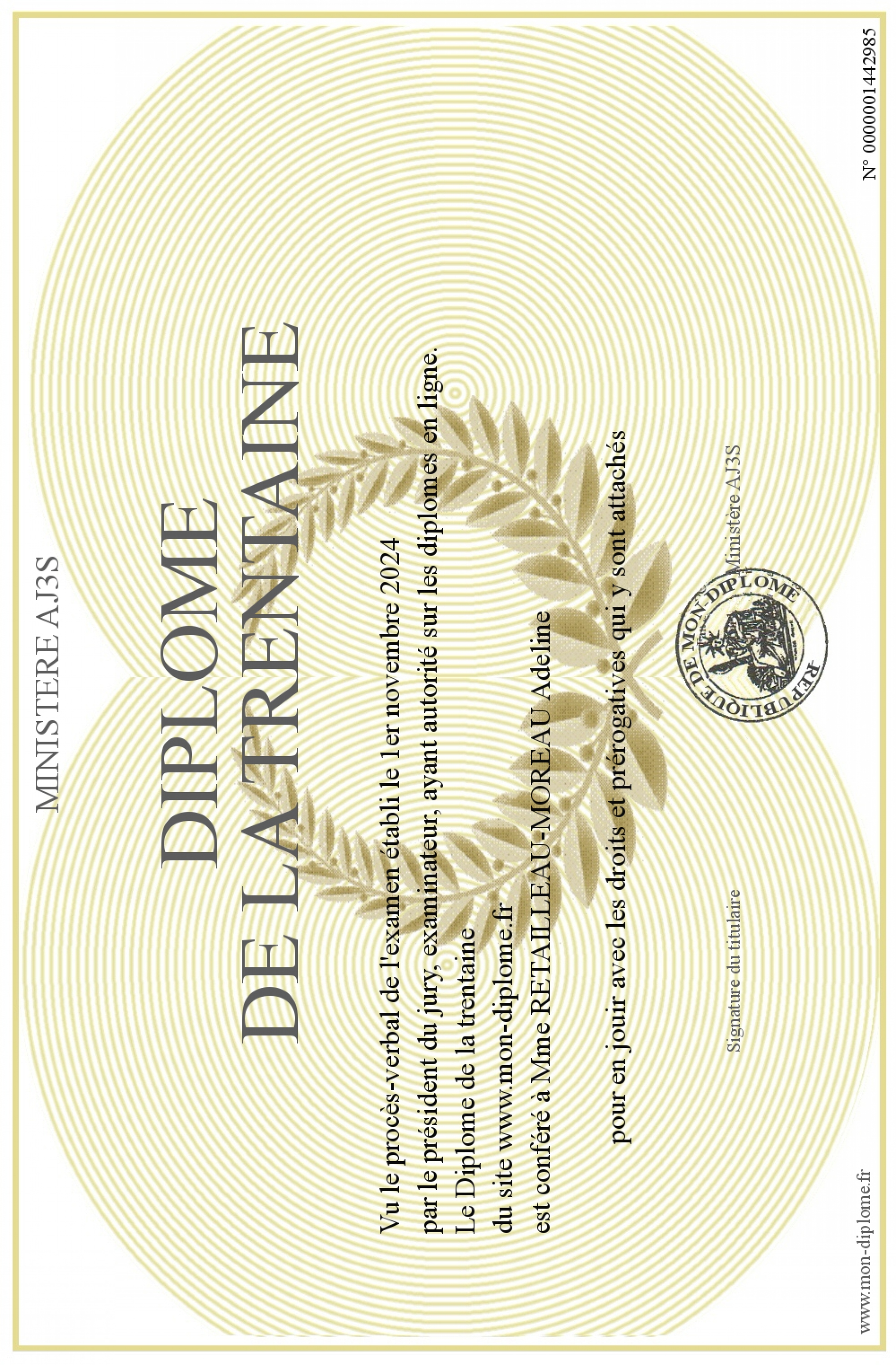 Envoyez par email votre Diplôme de la trentaine personalisé