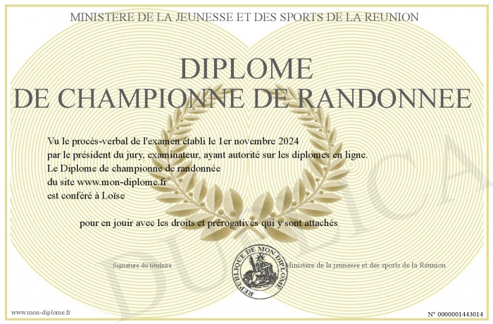 Envoyez par email votre Diplôme de championne de randonnée personalisé