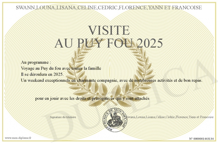 Envoyez par email votre Visite au puy fou 2025 personalisé