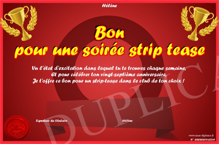 Envoyez par email votre Bon pour une soirée strip tease personalisé