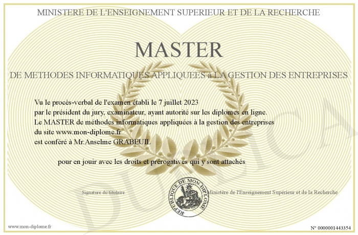 Envoyez par email votre MASTER de méthodes informatiques appliquées à la gestion des entreprises personalisé