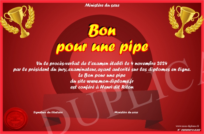 Envoyez par email votre Bon pour une pipe personalisé