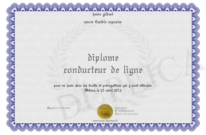 Envoyez par email votre diplome conducteur de ligne personalisé