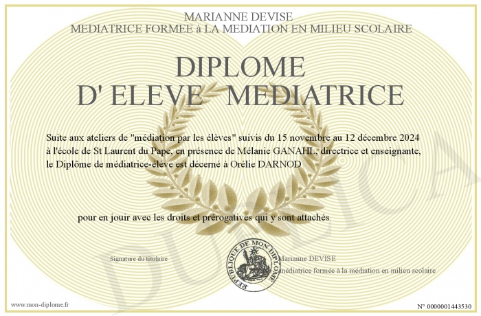 Envoyez par email votre Diplôme d' élève médiatrice personalisé
