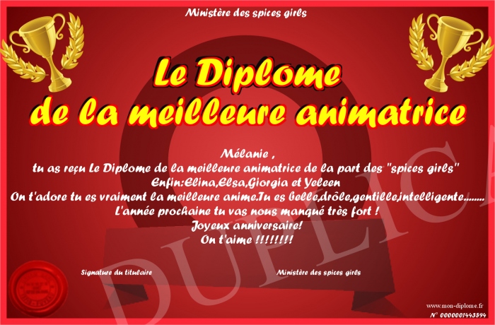 Envoyez par email votre Le Diplôme de la meilleure animatrice personalisé