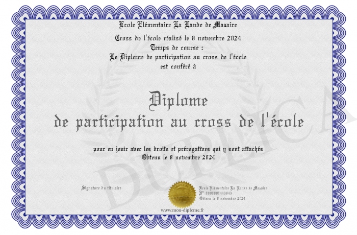 Envoyez par email votre Diplôme de participation au cross de l'école personalisé