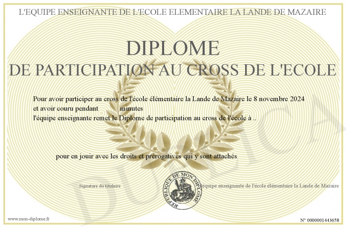 Envoyez par email votre Diplôme de participation au cross de l'école personalisé