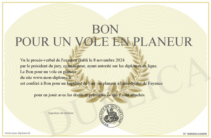 Envoyez par email votre Bon pour un vole en planeur personalisé