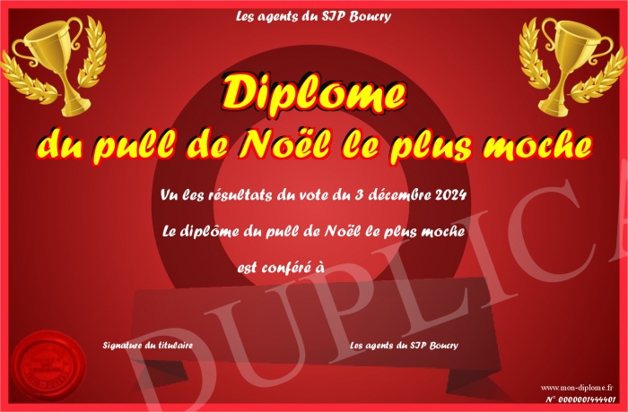 Envoyez par email votre Diplôme du pull de Noël le plus moche personalisé