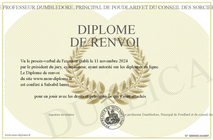 Envoyez par email votre Diplôme de renvoi personalisé