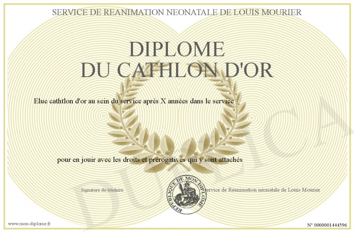 Envoyez par email votre Diplôme du cathlon d'or personalisé