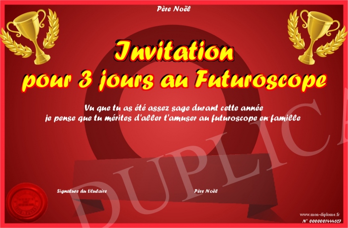 Envoyez par email votre Invitation pour 3 jours au Futuroscope personalisé