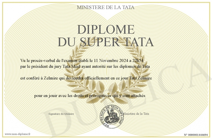 Envoyez par email votre Diplôme du Super Tata personalisé