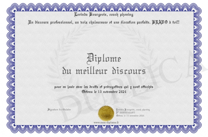 Envoyez par email votre Diplôme du meilleur discours personalisé
